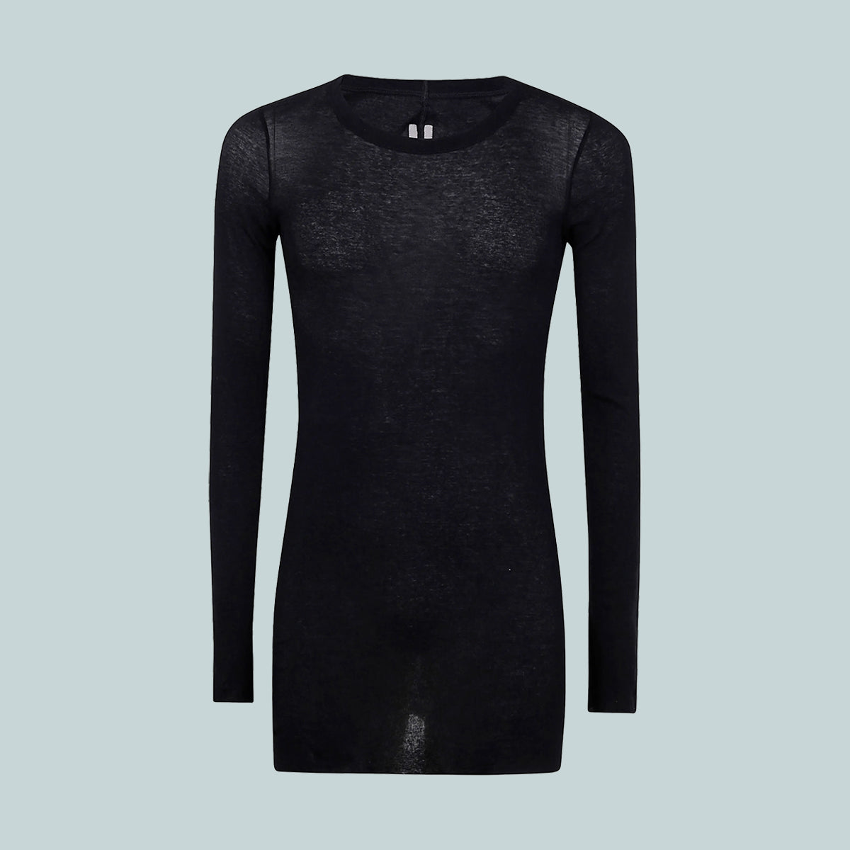 rick owens ss25 hollywood rib ls t in black mini rib jersey