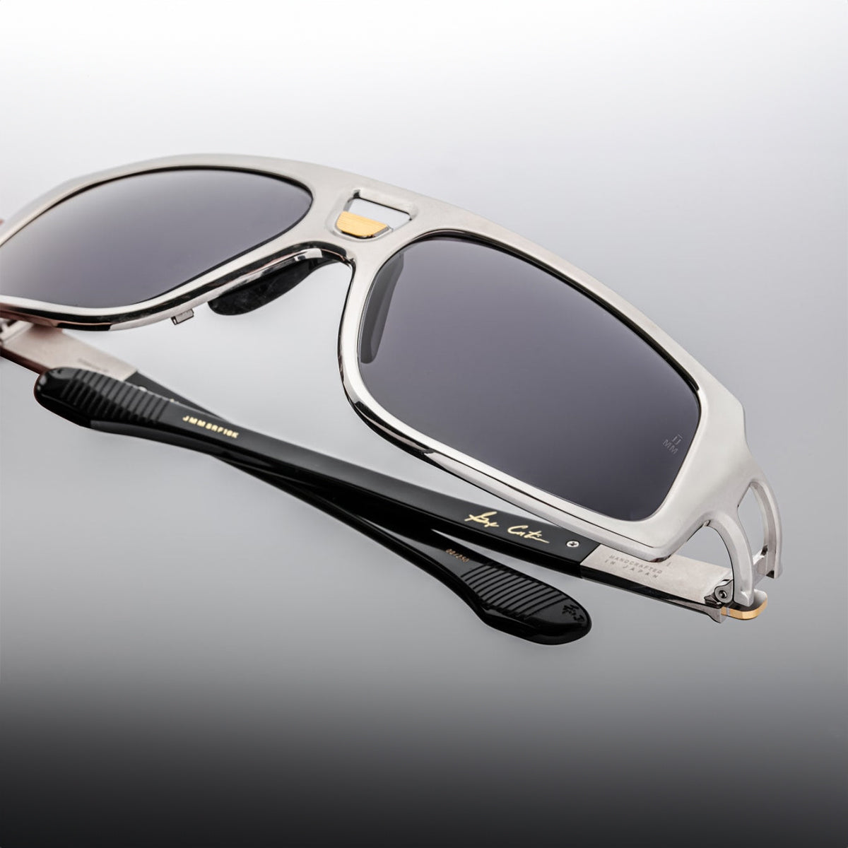- Black 100% Beta Titanium front and temples with black acetate temple-tips