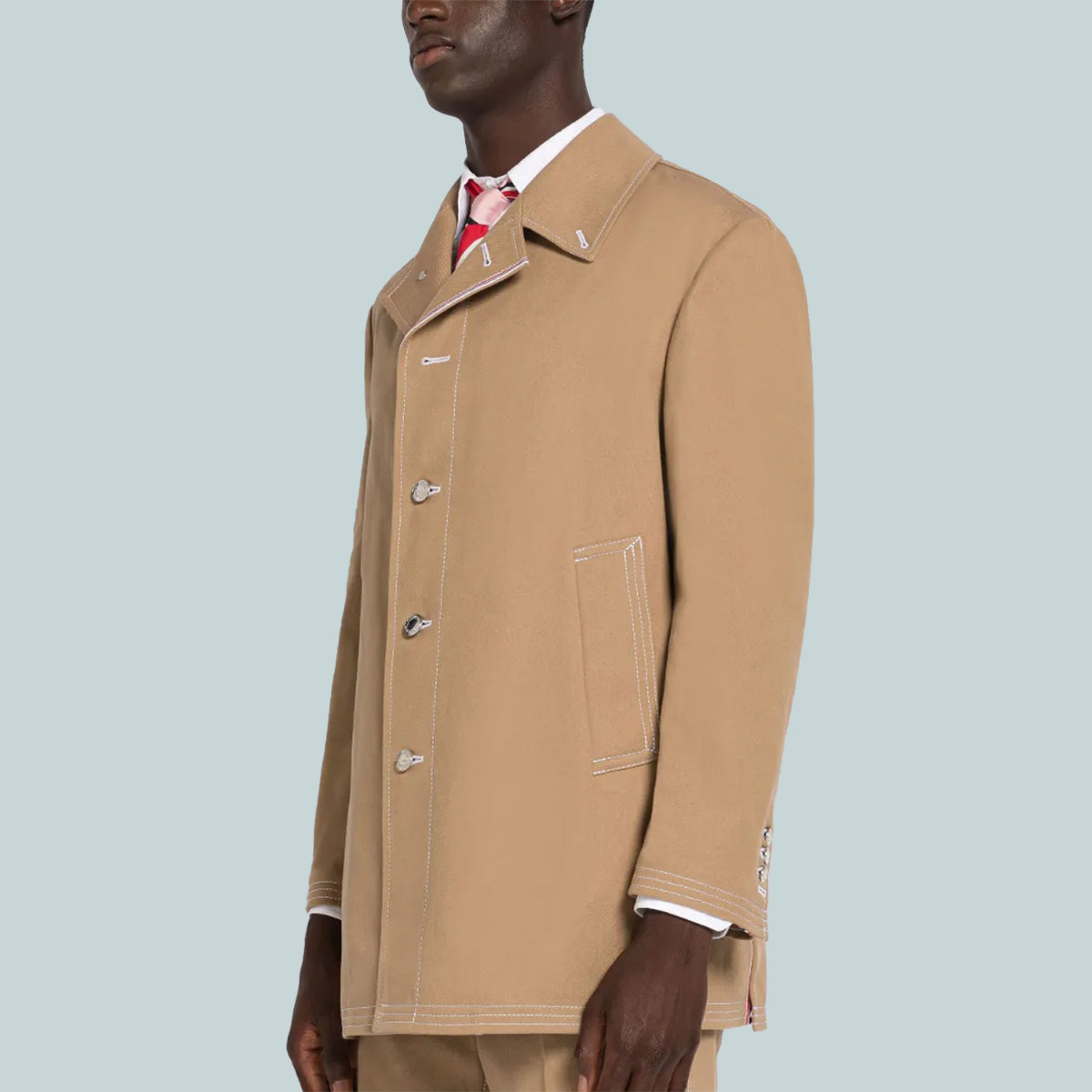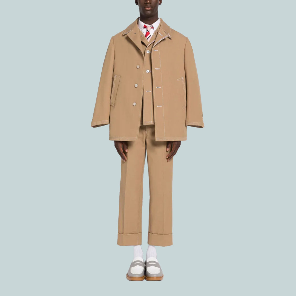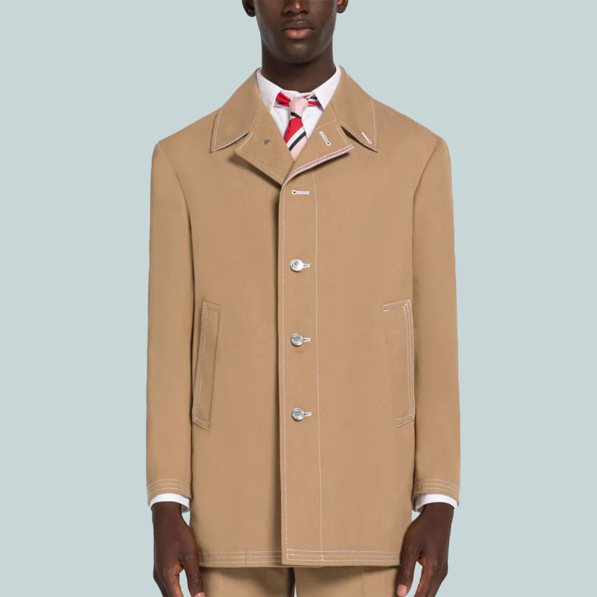 Selvedge Denim Track Stitch Bal Collar Overcoat Camel