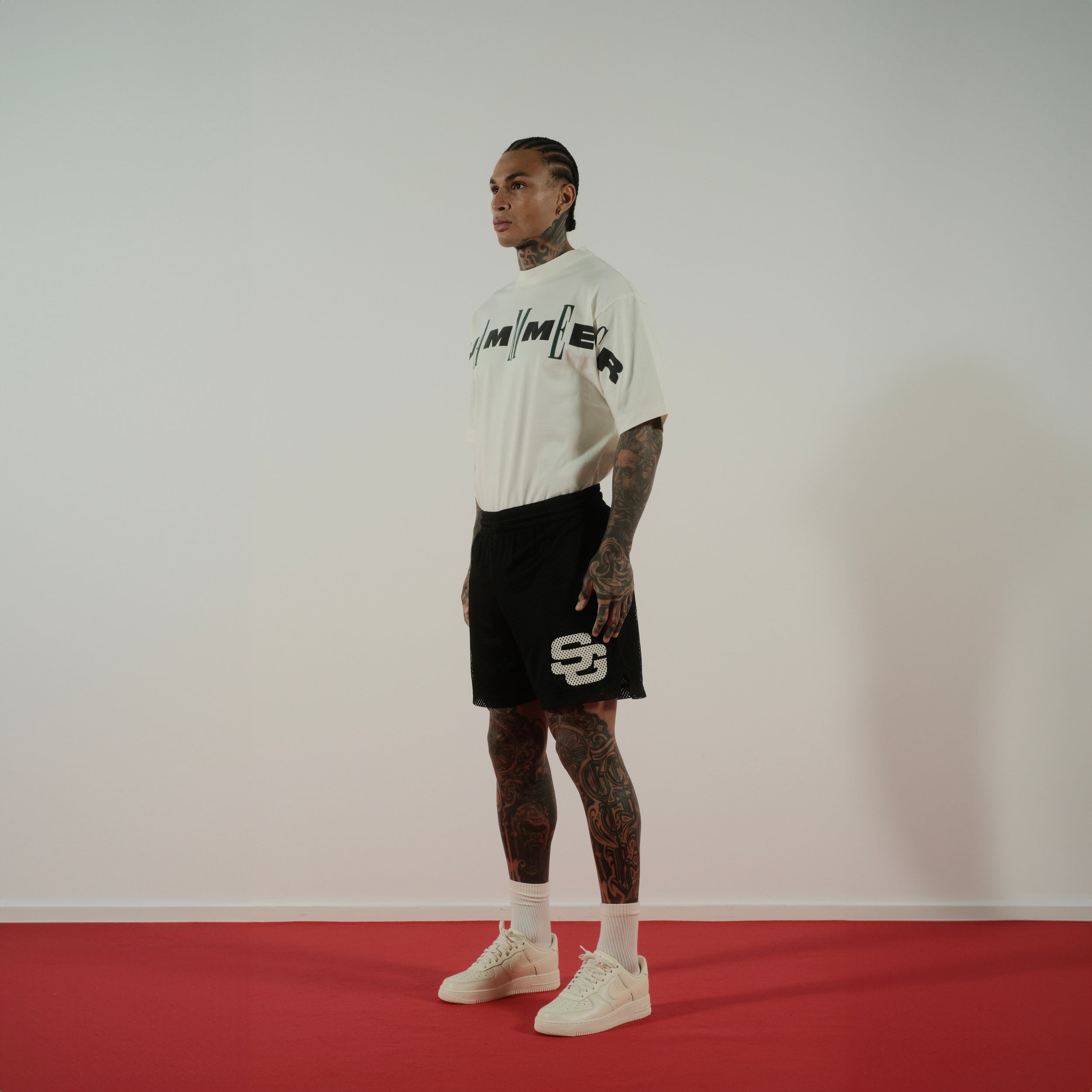 Comfy basketball shorts made out of 100% polyurethane with screen print and brand tag.