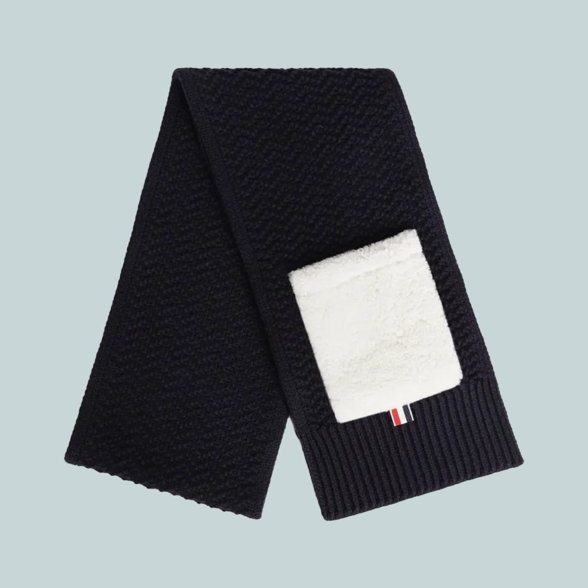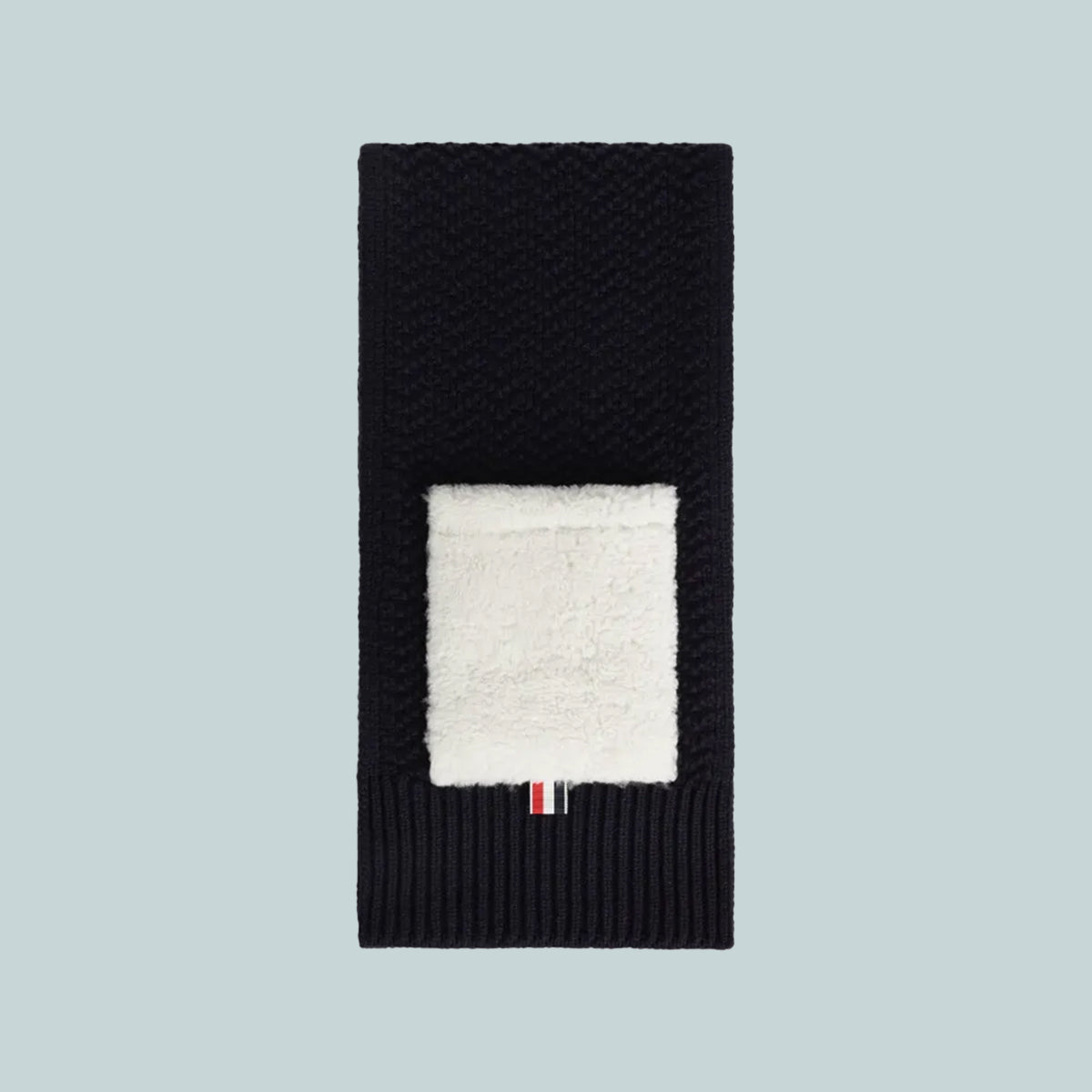 Chunky Merino Link Stitch Shearling Pocket Scarf Navy