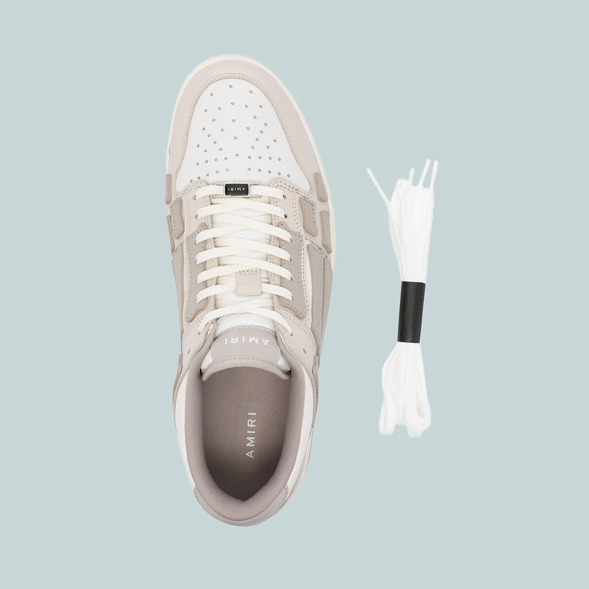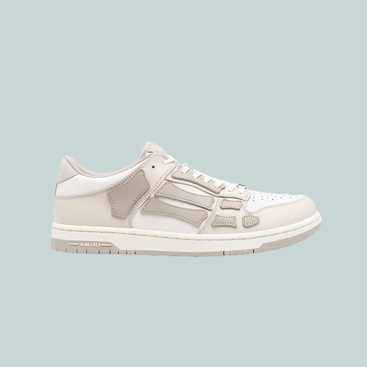 A distinctive house icon, the skel top series transposes sewn skeleton leather appliqués on a timeless basketball silhouette. crafted in leather with a two-tone rubber sole, the shoe is accented with perforated detailing, topstitching and signature graphics.