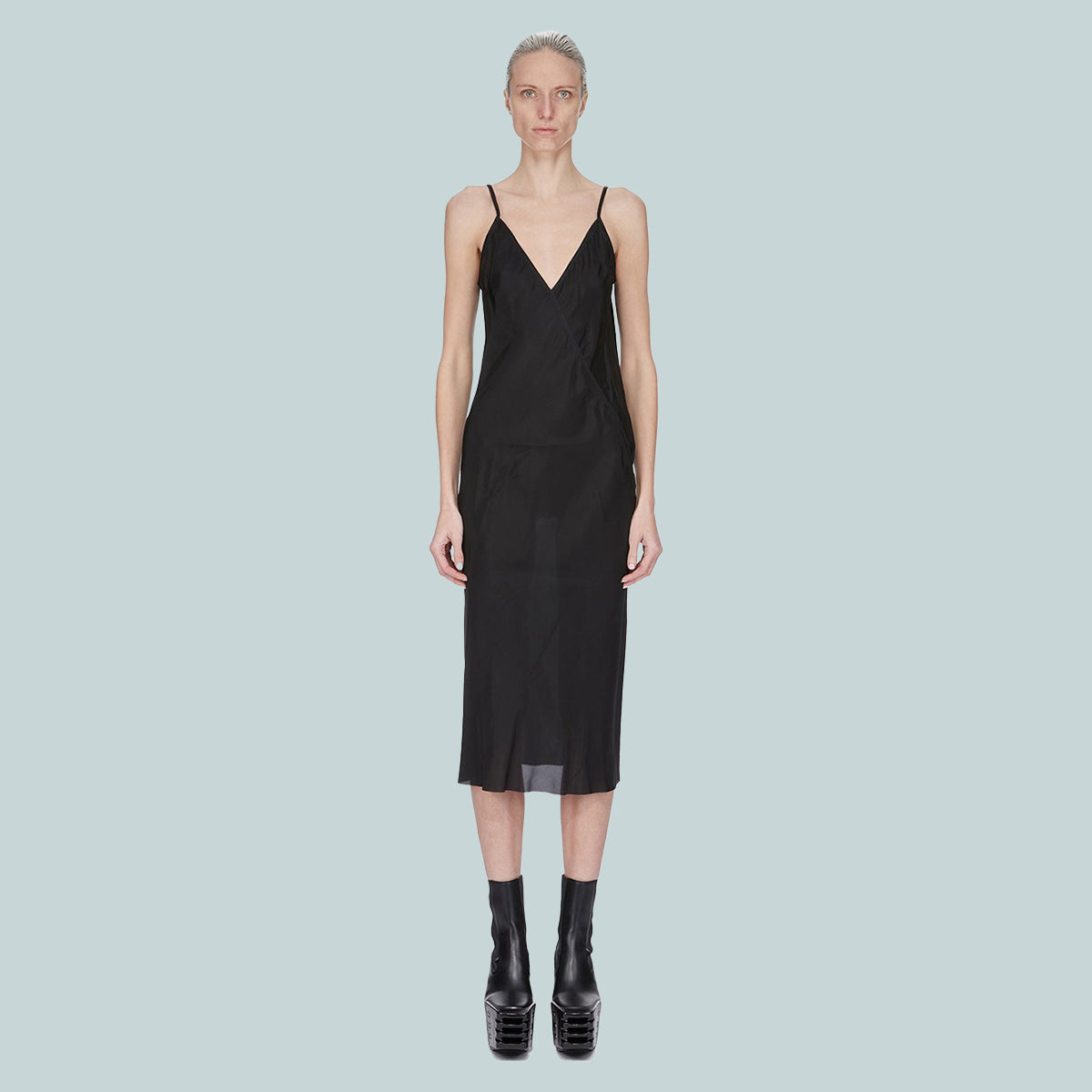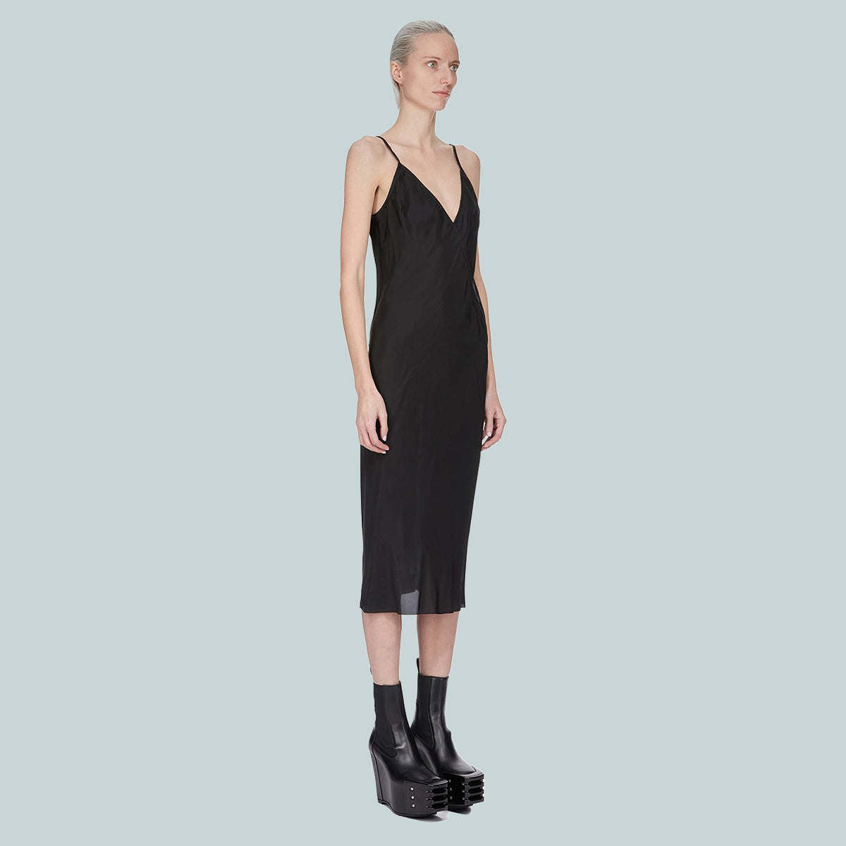 rick owens ss25 hollywood slip dress in black cupro japonette
