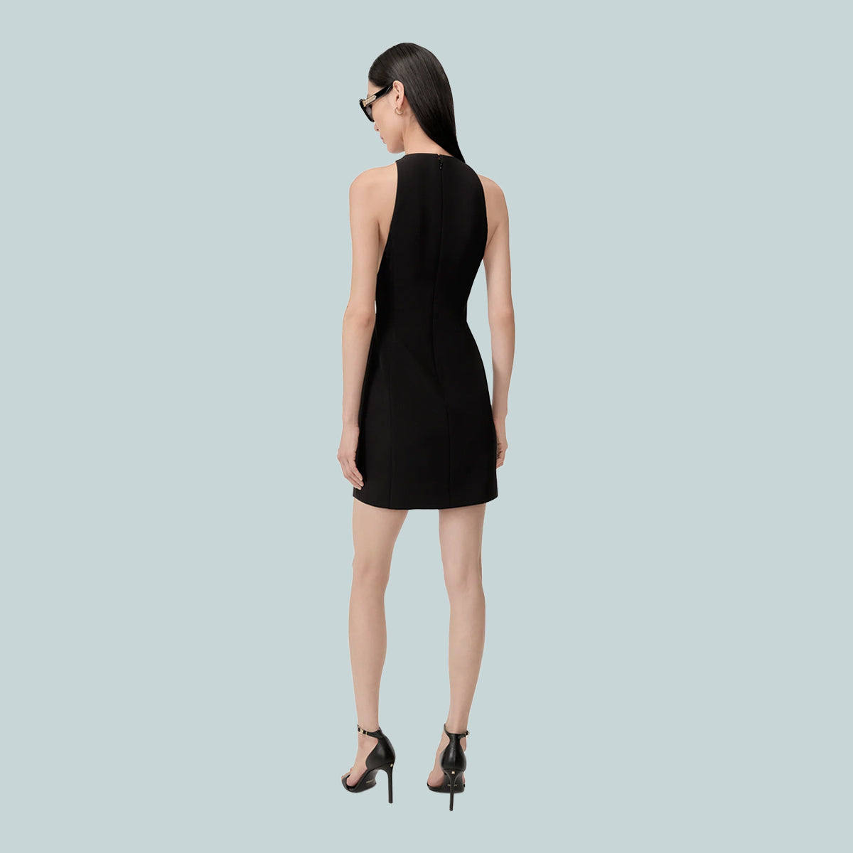 The Pre-Fall 2025 womenswear collection continues to explore house signature motifs in streamlined silhouettes. The Slit Mini Dress features MA icon hardware and is finished with invisible zip back closure.