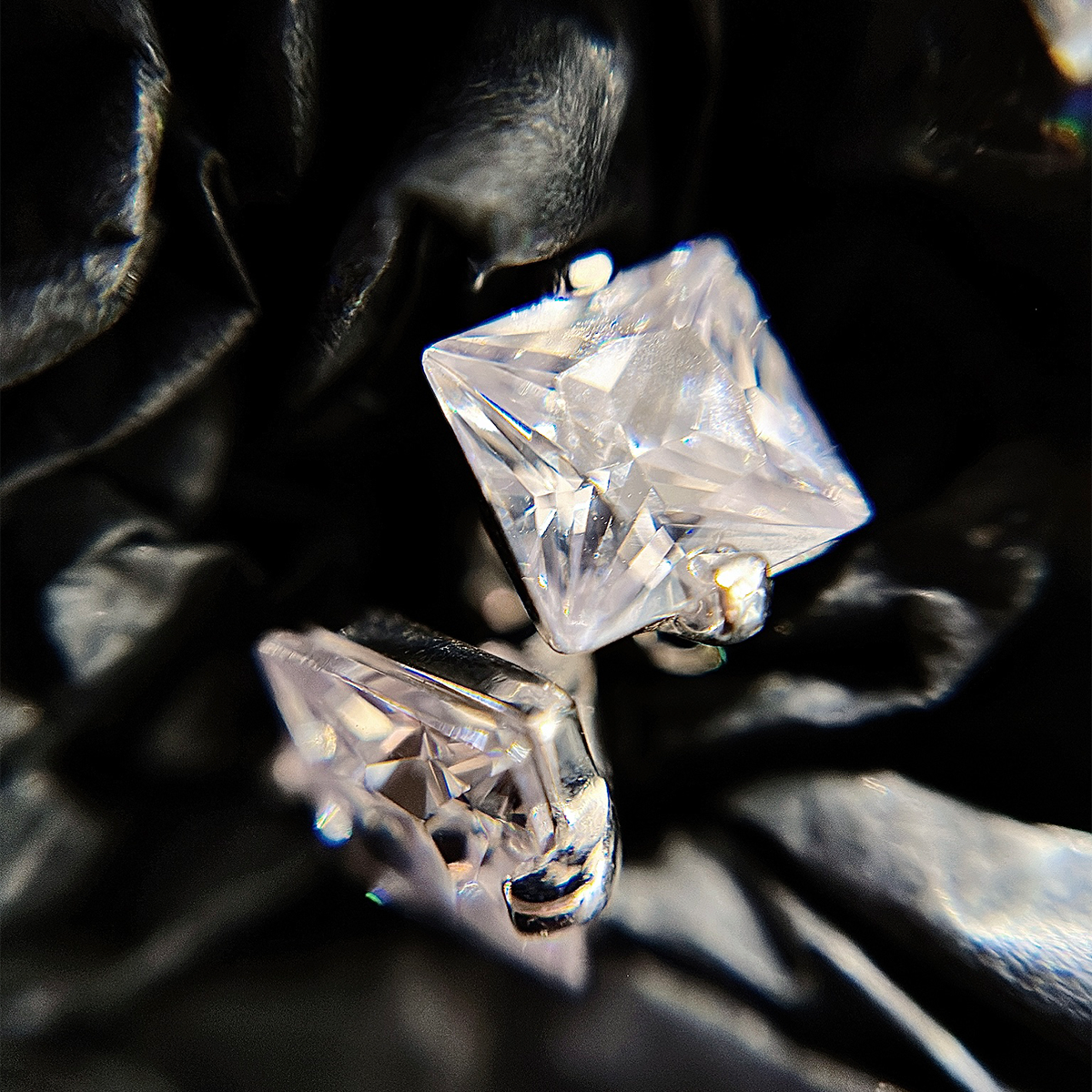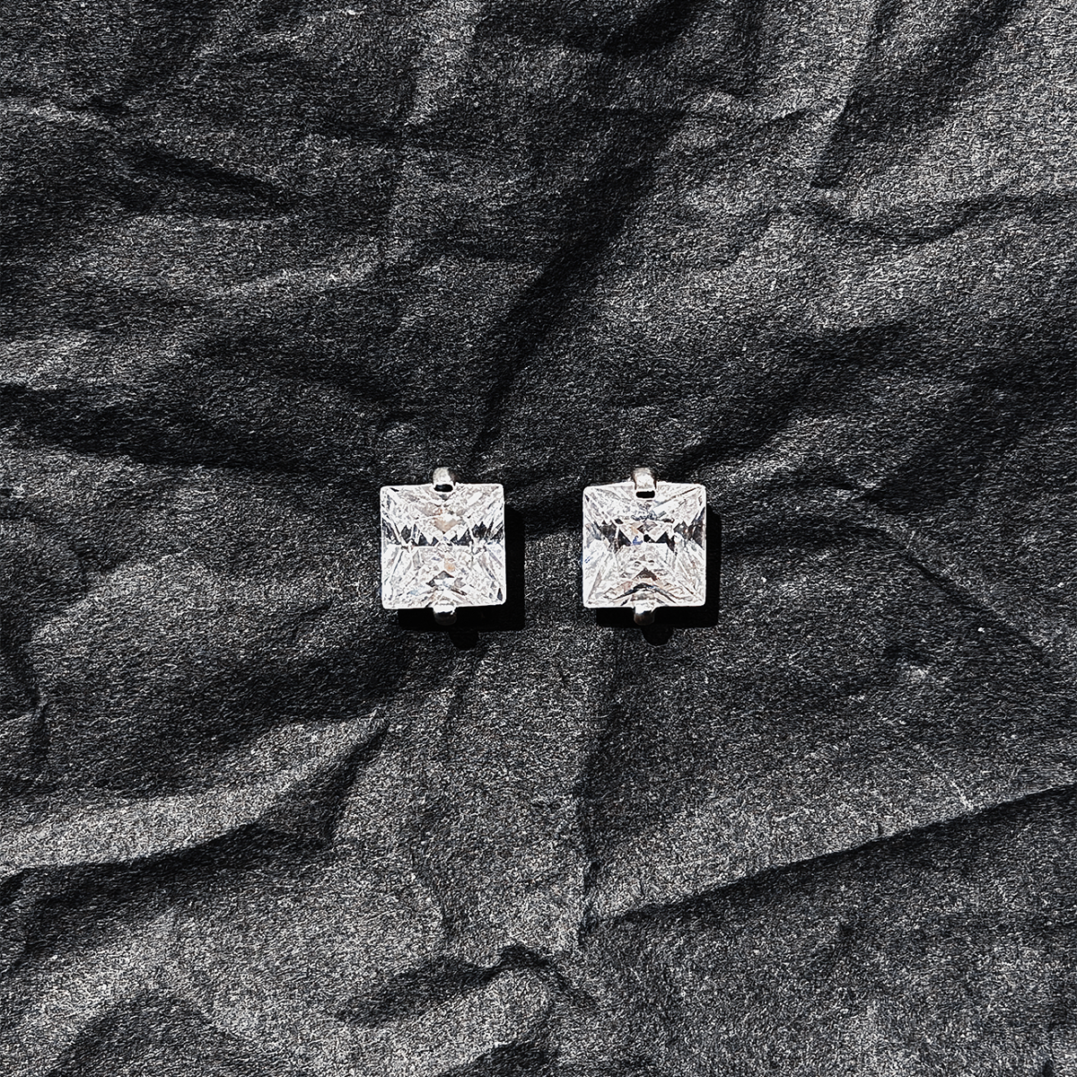 Solid .925 Sterling Silver mount 7x7mm white brilliant cut laboratory gemstones in a double prong setting