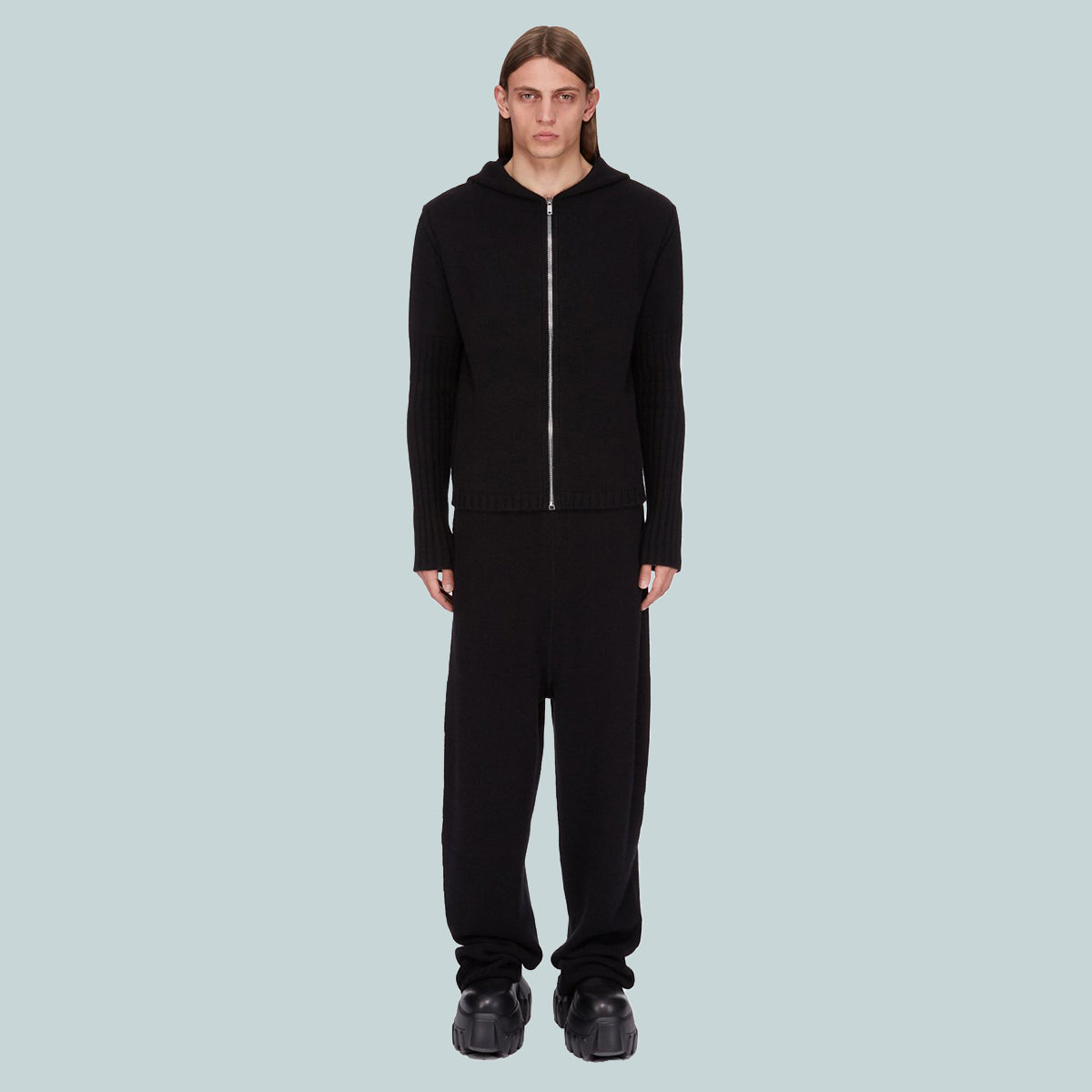 rick owens ss25 hollywood track in black las palmas cashmere knit