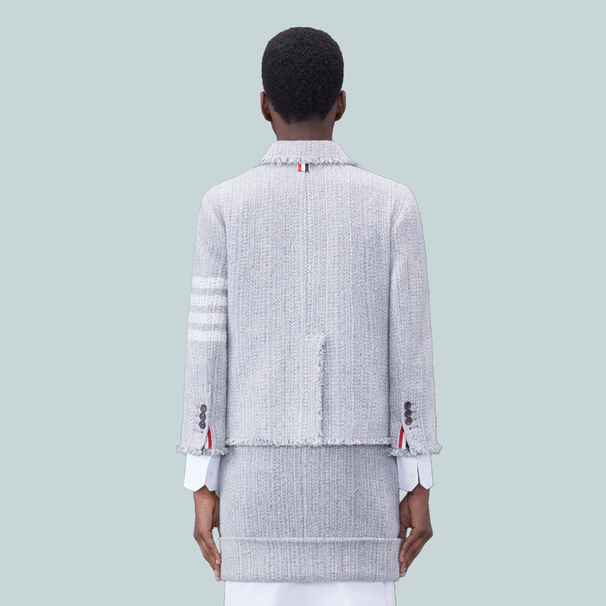 Tweed Fray 4-Bar Cropped Sack Jacket Grey