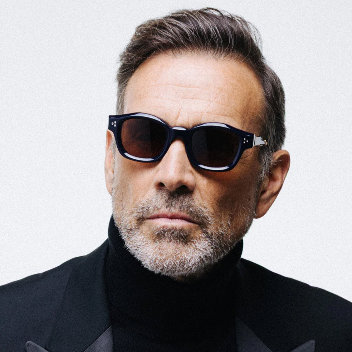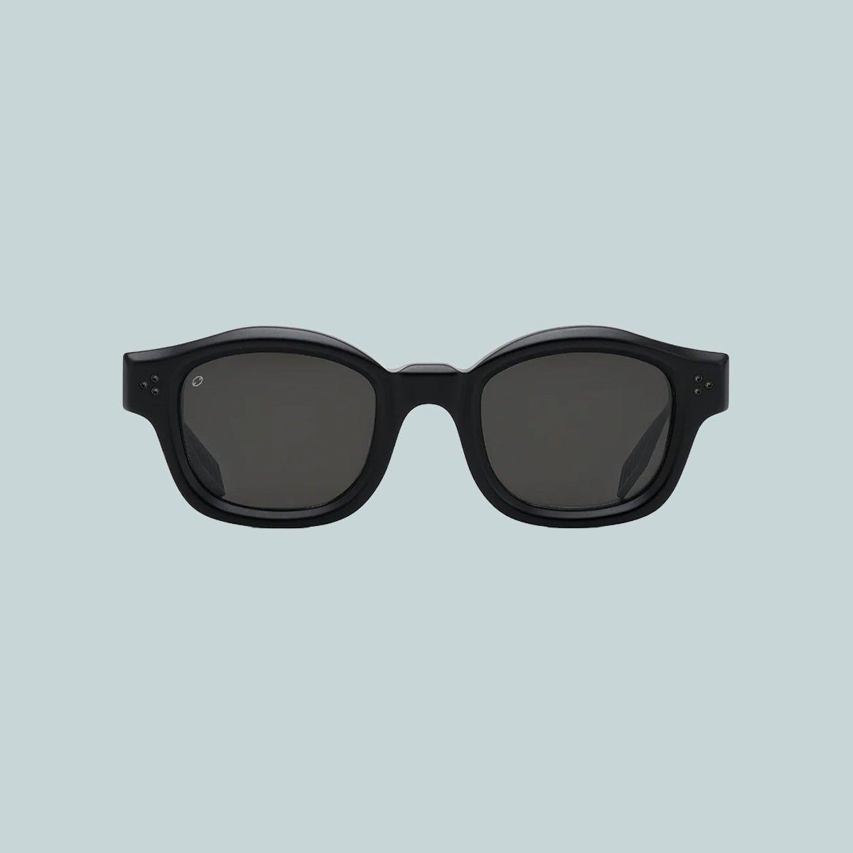 Combination construction, utilizing a cotton extrusion method with custom complex coloration construction featuring 10mm hand-carved fronts with hypoallergenic nose pads. Optics are outfitted with a six/base CR39 lens finished with both anti-reflective and scratch-resistant coatings. Monoblock decor connections with two-tone detail secured by custom torx screws.
