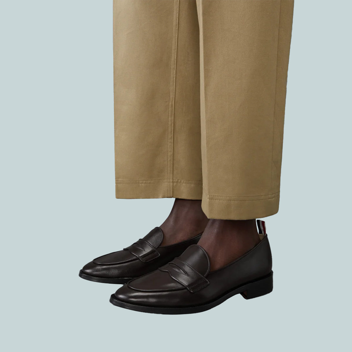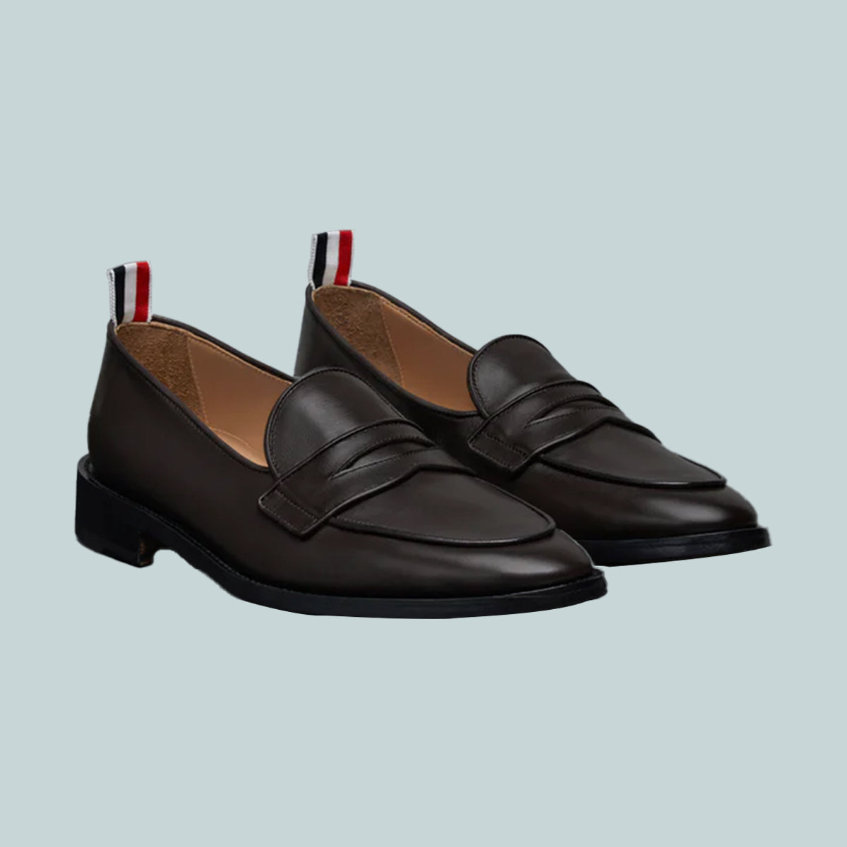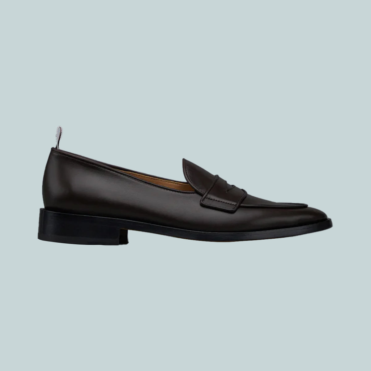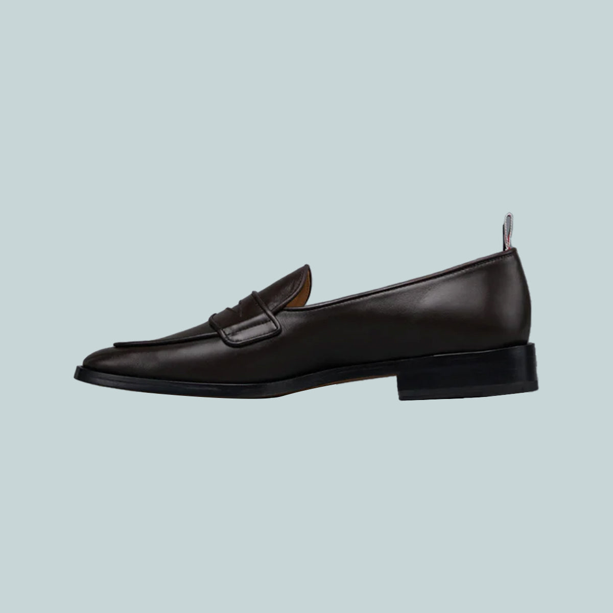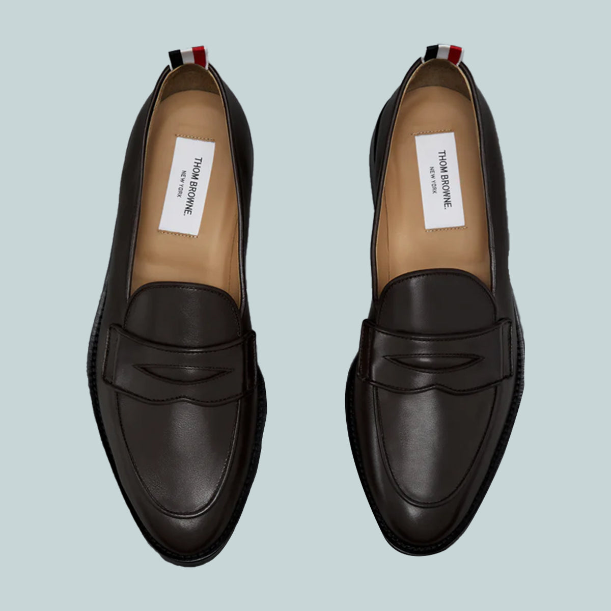 Vitello Calf Leather Varsity Penny Loafer Dark Brown