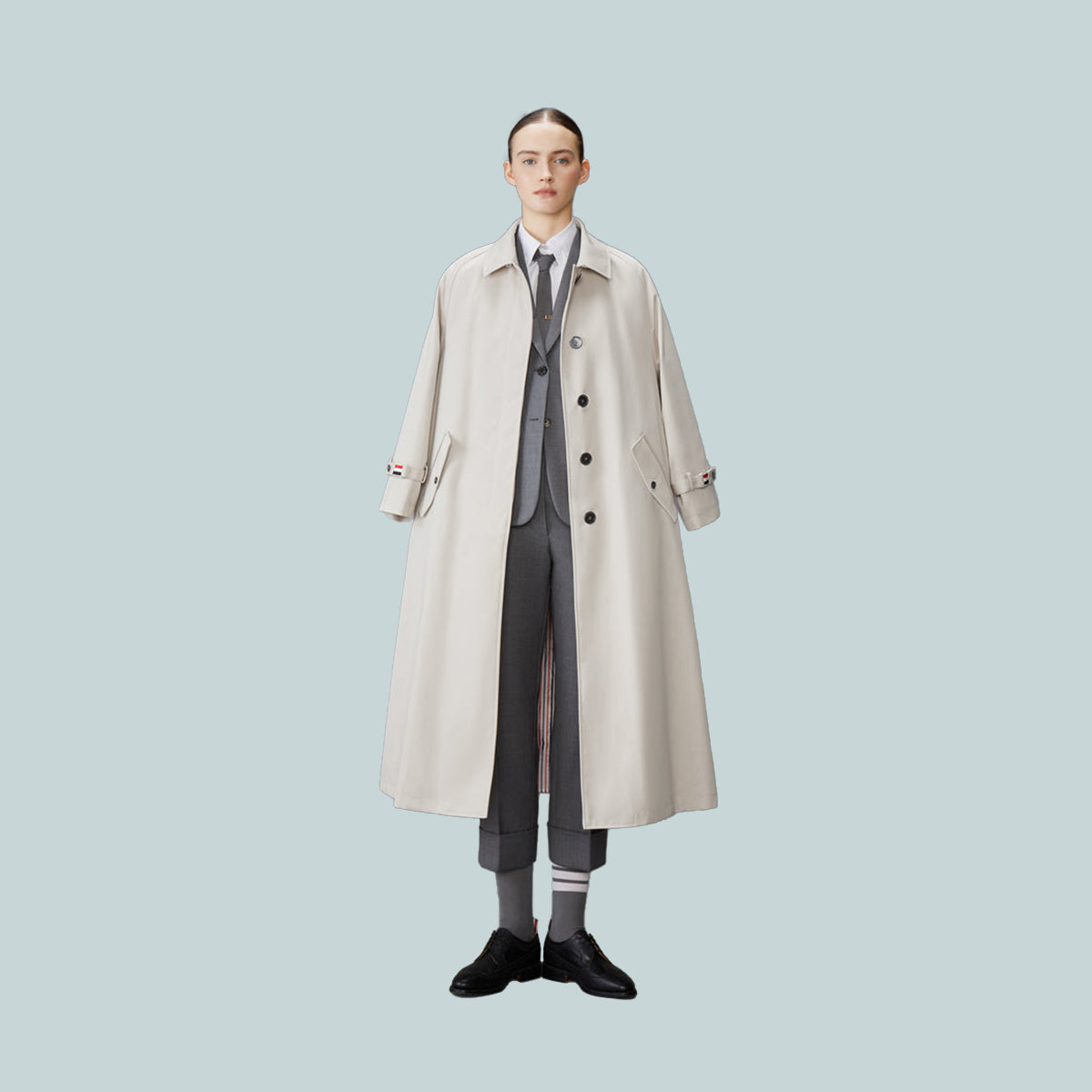 Waterproof Cotton Twill Raglan Trench Overcoat Beige