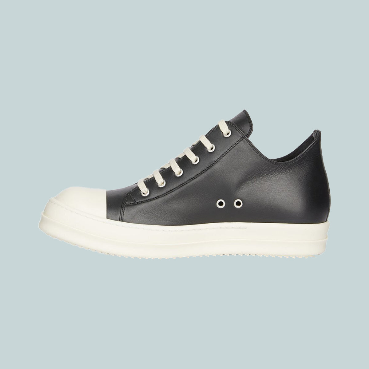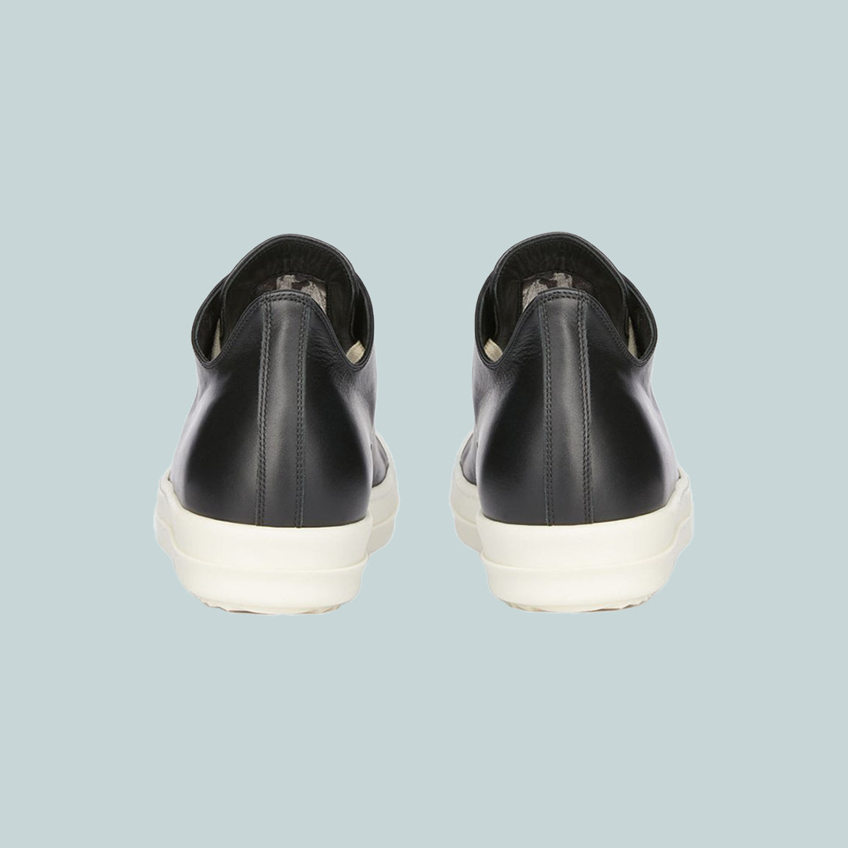 rick owens ss25 hollywood low sneaks in black/milk/milk full grain calf leather