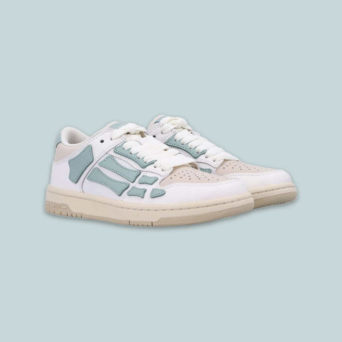 A distinctive house icon, the Skel Top series transposes sewn skeleton leather appliqués on a timeless basketball silhouette. Crafted in leather with a two-tone rubber sole, this shoe is accented with perforated detailing, topstitching and signature graphics..