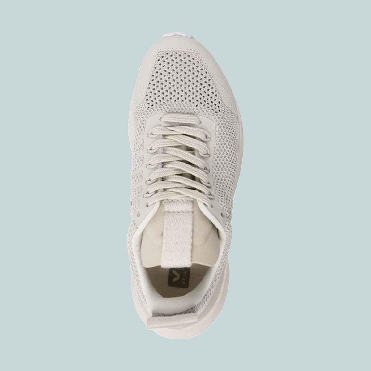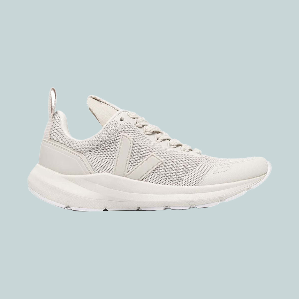 The Performance Runner in Pearl from the Fall/ Winter 21 VEJA x Rick Owens collaboration. Made with V-knit mesh from 100% recycled plastic bottles.
