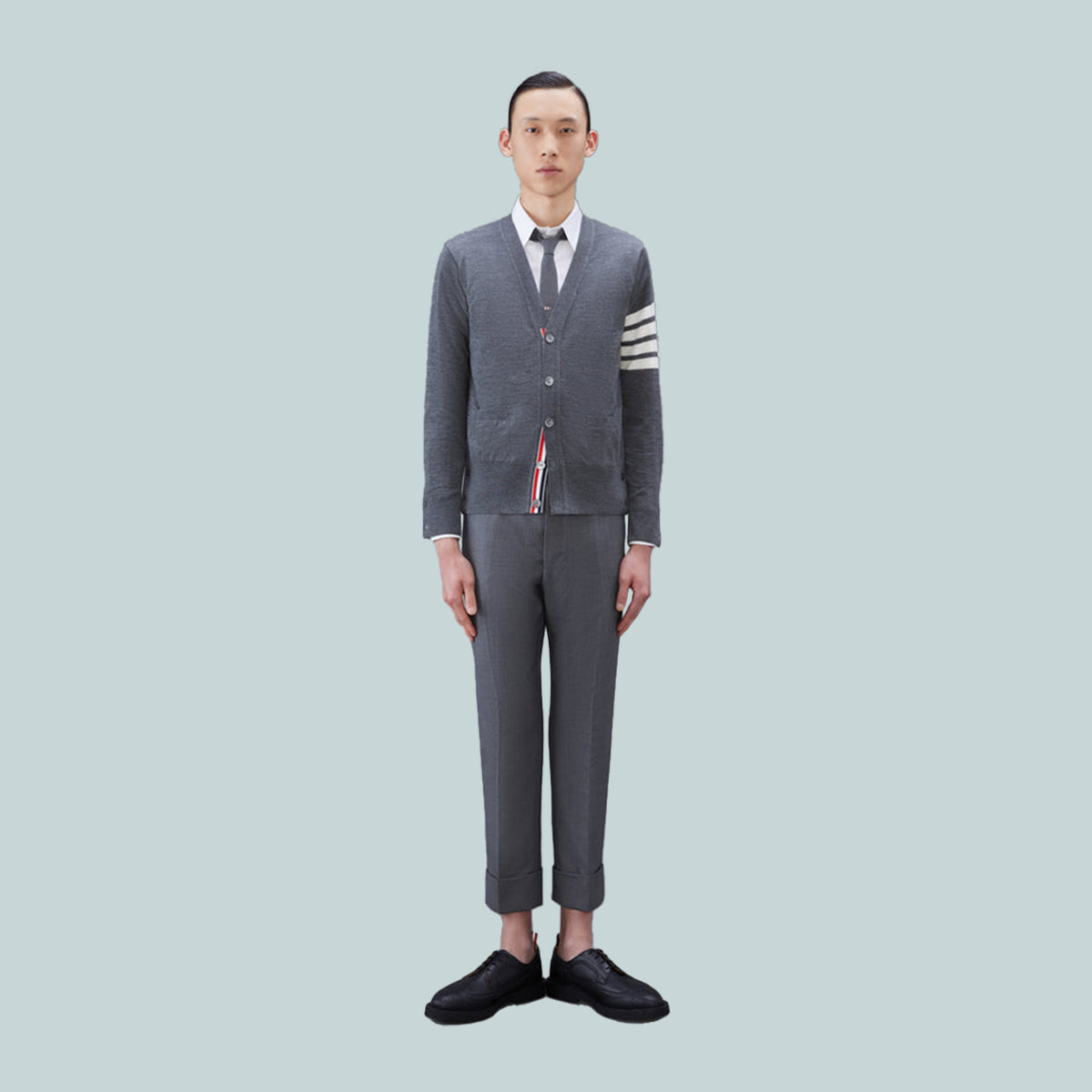 Wool Classic 4-Bar V-Neck Cardigan Grey
